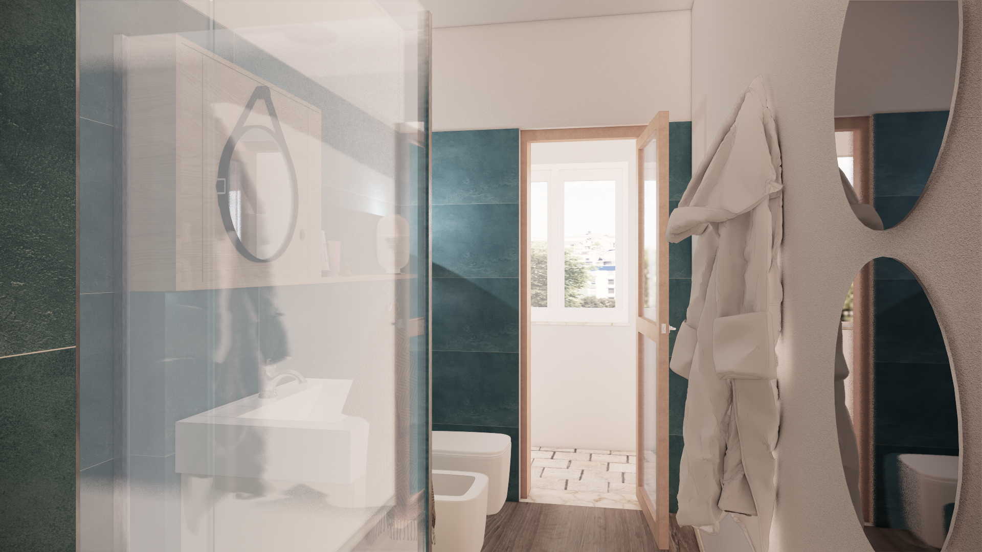 We were contacted to work on this project for a holiday home in the beautiful city of Alghero, in Sardinia. The owners feel the apartment is a little dated in finishes and furnishings and they wanted an idea for a new look so we were able to work on a wall and a couple of doors as well, as well as designing a couple of furnishings, for the bathroom cabinet and the large wardrobe in the corridor Appartamento per le vacanze